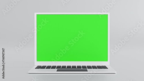 Wall mural : Laptop computer notebook spin around and open to show green screen display, application website prom