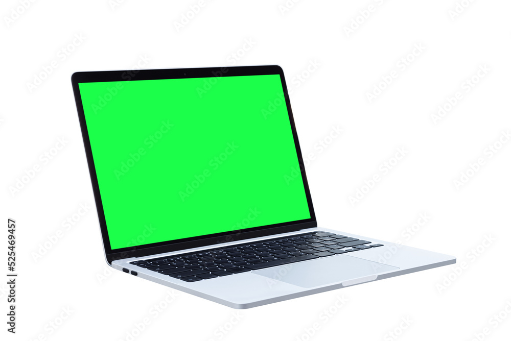 Wall mural : Laptop computer or notebook with green screen on transparent background - png format -