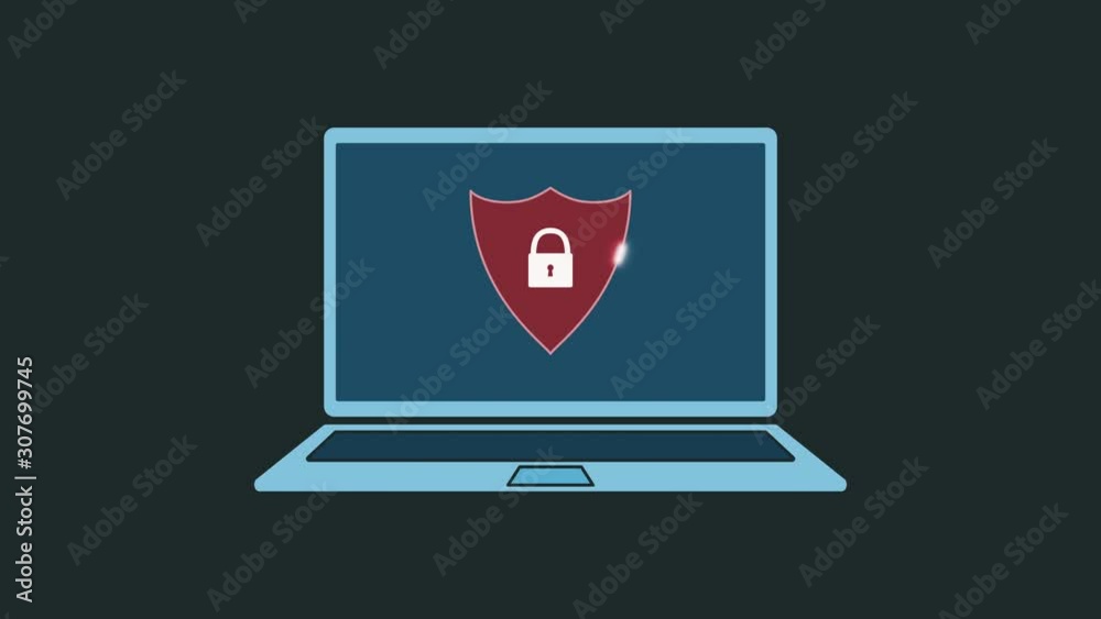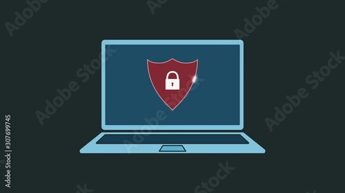 Wall mural : Laptop computer with a loading bar and a shield with a padlock on screen, cartoon style, concept of
