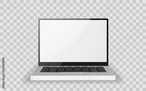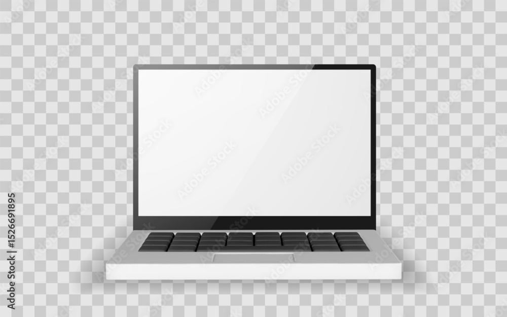 Wall mural laptop computer with blank screen isolated on transparent background, front view. modern device mock