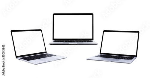 Wall mural : Laptop computer with blank transparent screen and background- png format -