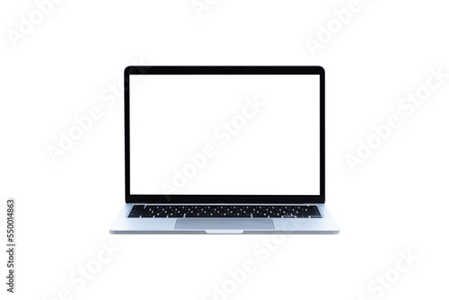 Wall mural laptop computer with blank transparent screen and background- png format.