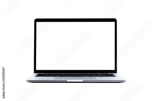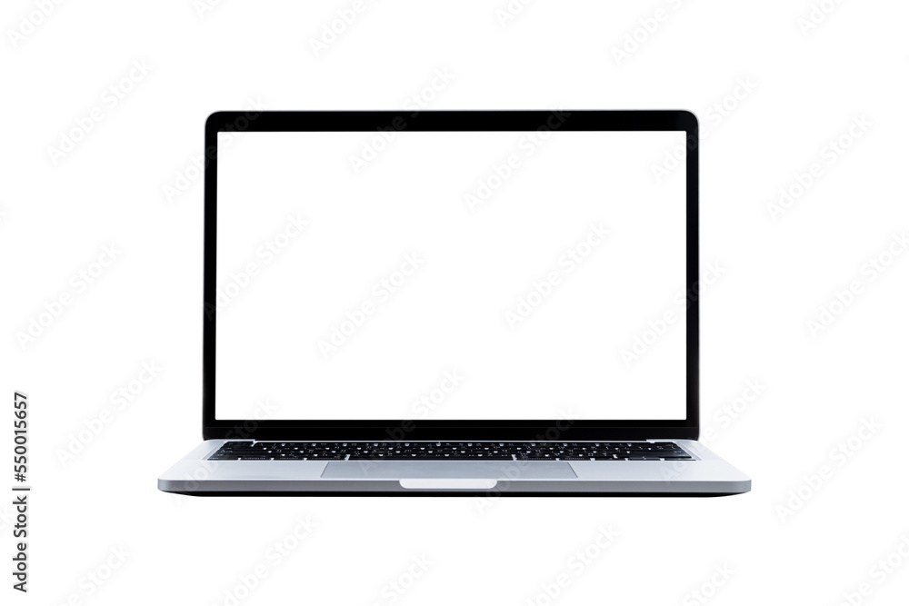 Wall mural laptop computer with blank transparent screen and background- png format.