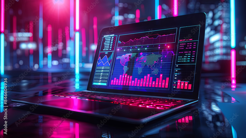 Wall mural : Laptop displaying charts and graphs for analyzing business accounting and statistics - also, pertains