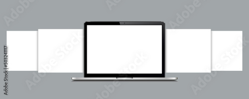 Wall mural laptop mockup with blank wireframing pages. concept for showcasing web-design projects. - Wall murals Wall mural laptop mockup with blank wireframing pages. concept for showcasing web-design projects. - Wall murals