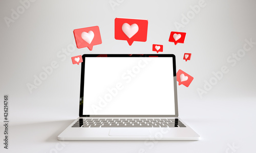 Laptop mockup with many like notifications at white background - social media concept - 3d renderingWall mural