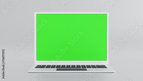 The watermark will not be included on Wall mural.: Laptop open to show green screen and zoom close up display, application website presentation, 3d ren