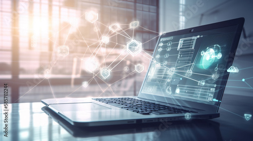 Wall mural : Laptop running neural network/ machine learning tasks and multitasking jobs at it's full powerful co
