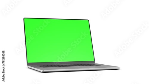 Wall mural : Laptop with a frameless screen - smooth transition, rotate, and zoom - the video includes a green scr