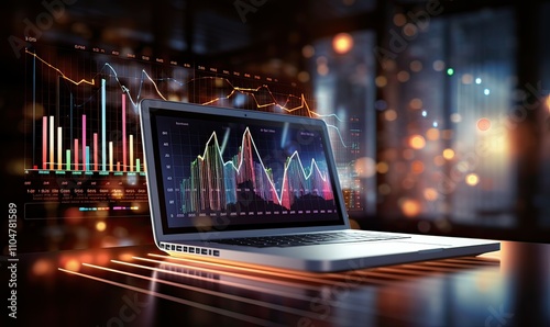 The watermark will not be included on Wall mural.: Laptop with binary code on screen