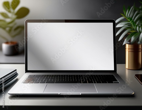 The watermark will not be included on Wall mural.: Laptop with blank empty white screen display mock-up, isolated on white background clipping path, fu