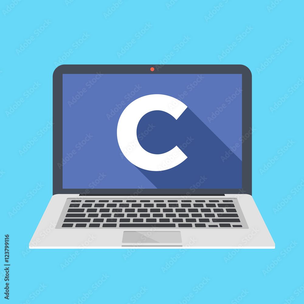 Wall mural laptop with c letter on screen. learn c programming language concept. modern long shadow flat design - Wall murals Wall mural laptop with c letter on screen. learn c programming language concept. modern long shadow flat design - Wall murals