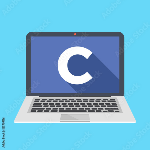 Laptop with c letter on screen - learn c programming language concept - modern long shadow flat designWall mural