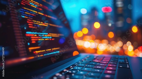 Wall mural : Laptop with coding on screen for technology concept - generate ai image