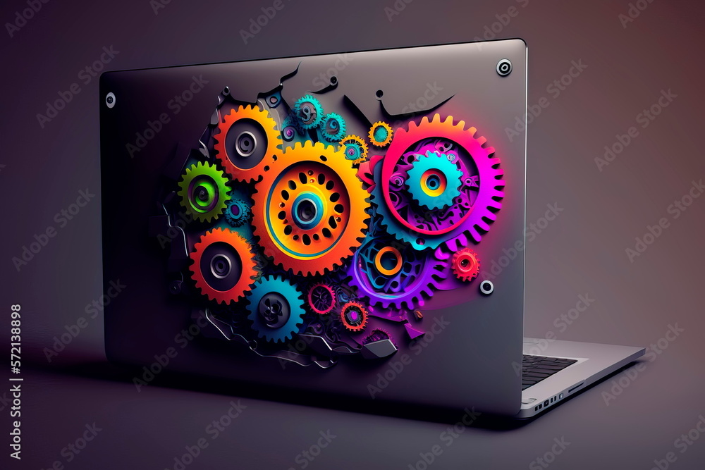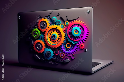 Wall mural laptop with gears work for programmer generative ai