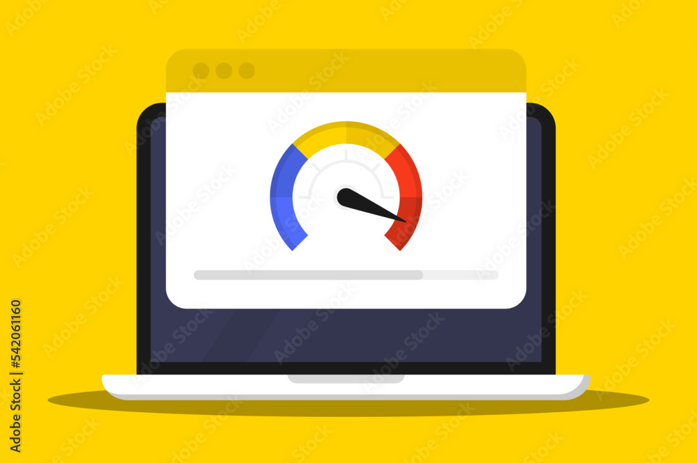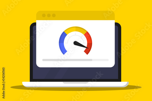Wall mural laptop with internet connection speed test on the screen. internet download speed test on web page.  - Wall murals Wall mural laptop with internet connection speed test on the screen. internet download speed test on web page. - Wall murals
