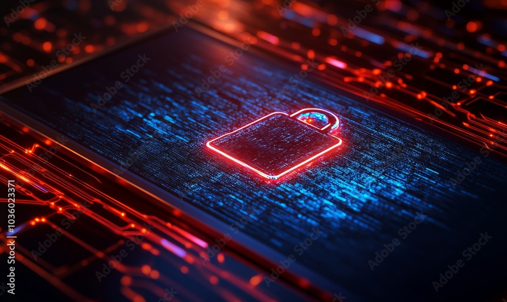 Laptop with padlock - password and scanning unlock and access to business data network - cloud - biometWall mural