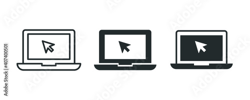 Laptop with pointer, cursor laptop icon with cursor, screen mobile computer, search click mouse, disWall mural