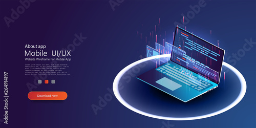 The watermark will not be included on Wall mural.: Laptop with program code isometric, software development and programming applications - business conc