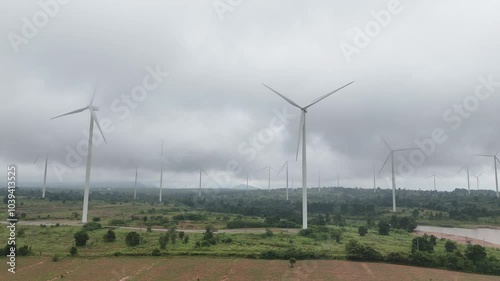 The watermark will not be included on Wall mural.: Large field with many wind turbines in the background