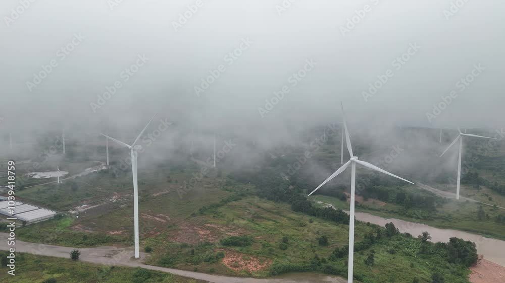 The watermark will not be included on Wall mural.: Large field with many wind turbines in the background