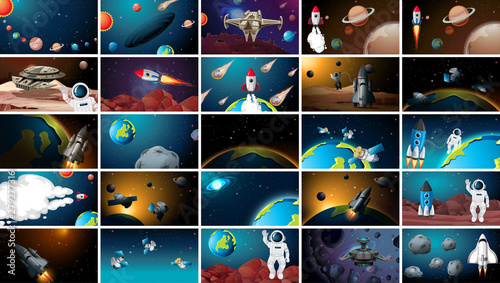 The watermark will not be included on Wall mural.: Large set of outer space scenes