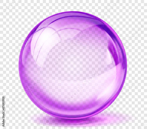 The watermark will not be included on Wall mural.: Large translucent shiny sphere of purple color with glare and shadow on transparent background - vect