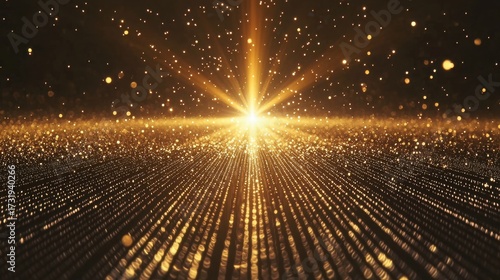 Wall mural : Laser beam diffraction creates brilliant golden light interference pattern radiating from central so