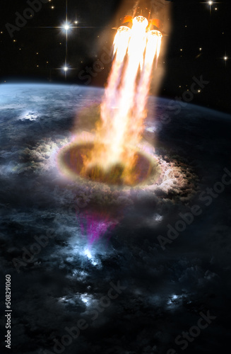 Wall mural launch of a spacecraft from the planet earth into space through the ozone hole. elements of this ima - Wall murals Wall mural launch of a spacecraft from the planet earth into space through the ozone hole. elements of this ima - Wall murals