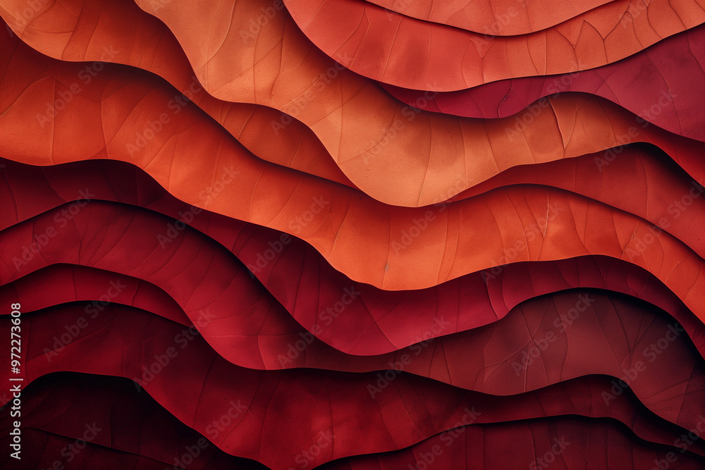 The watermark will not be included on Wall mural.: Layered abstract waves of red and orange with textured gradients, creating a warm and dynamic backgr