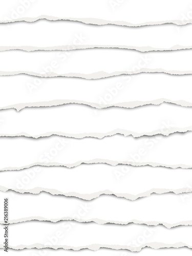 Wall mural : Layered oblong torn white paper fragments placed one under another with soft shadow - vector paper te