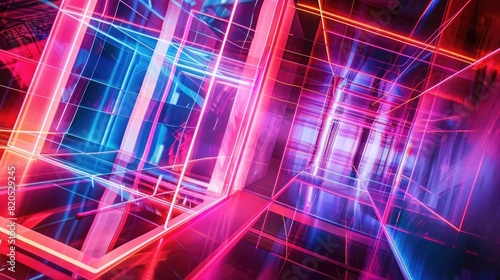 Wall mural : Layers of neon lines and geometric forms intersect in a symphony of light and color, reminiscent of