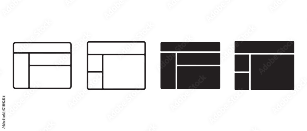 Wall mural : Layout grid icon set - isolated on white background in outline and solid style -