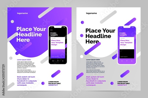 The watermark will not be included on Wall mural.: Layout template design with mobile application - business brochure flyer design layout -