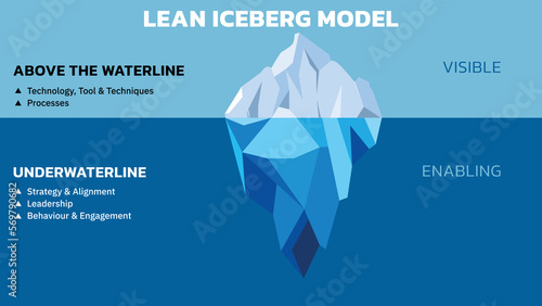 Wall mural : Lean iceberg model showing above the waterline (visible) and below the waterline (invisible and enab