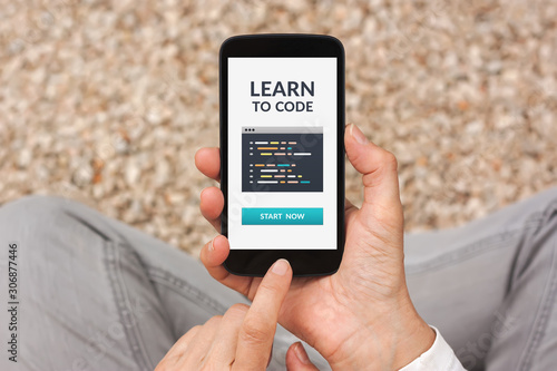 The watermark will not be included on Wall mural.: Learn to code concept on smartphone screen