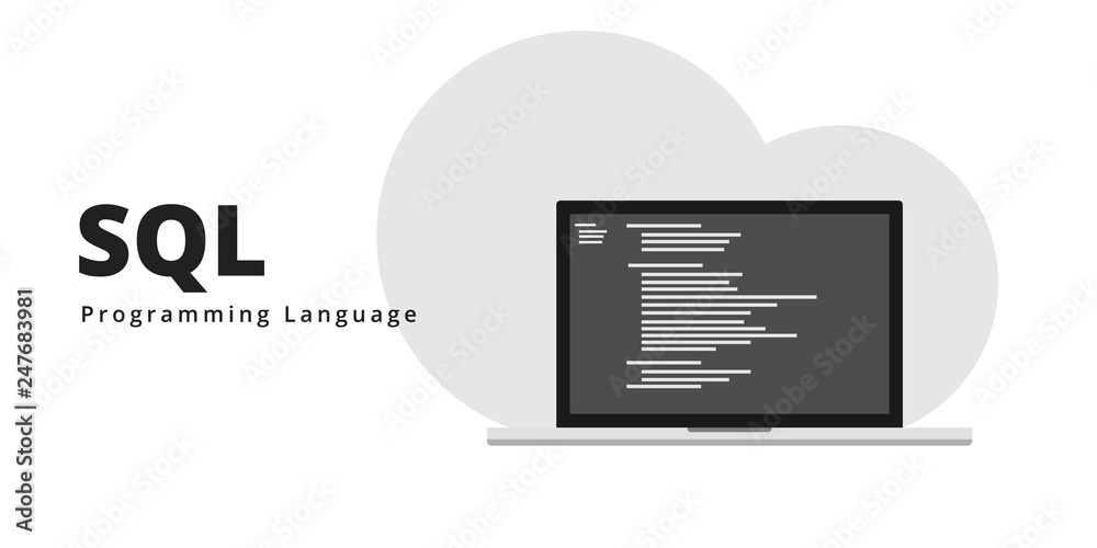 Wall mural learn to code sql programming language with script code on laptop screen, programming language code