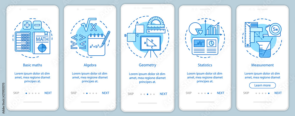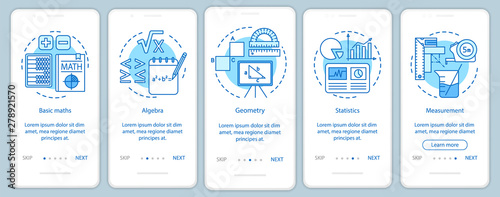 Wall mural learning maths course, educational tool onboarding mobile app page screen vector template. walkthrou