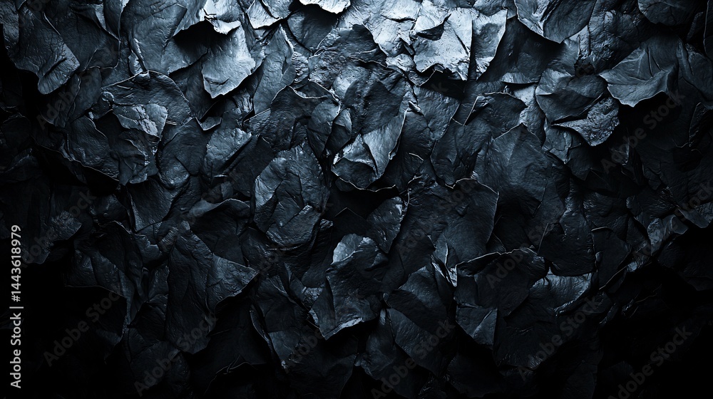 The watermark will not be included on Wall mural.: Leaves resting on a black background creating a striking contrast with moody shadows and atmospheric