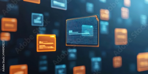 Wall mural : Legal contract risk management concept - digital interface with floating data panels in vibrant color