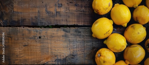 The watermark will not be included on Wall mural.: Lemons arranged on a wooden surface with a wood background creating a rustic copy space image