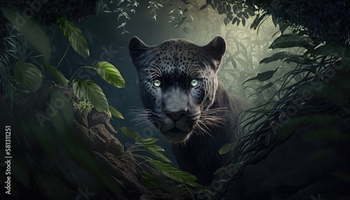 Wall mural leopard hiding in the forest. created with generative ai. - Wall murals Wall mural leopard hiding in the forest. created with generative ai. - Wall murals