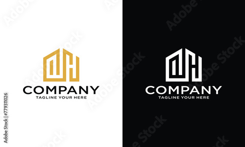 Wall mural : Letter h with house logo icon design vector design on a black and white background -