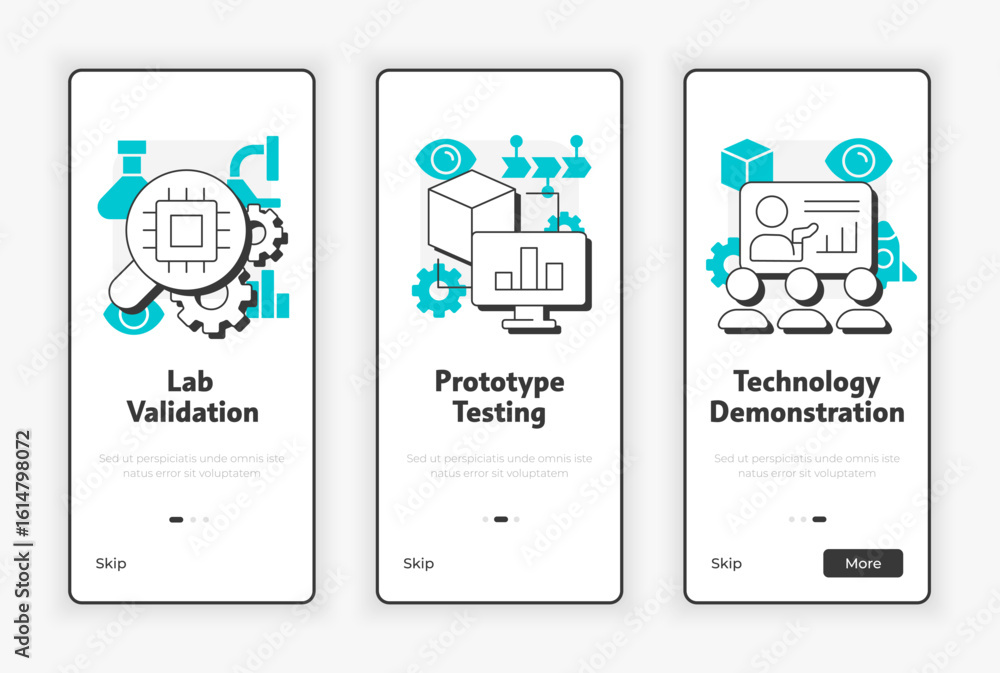 Wall mural : Levels of technology readiness mobile onboarding screen - development stage management ux ui illustra