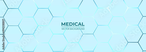 Wall mural light blue abstract wide medical background science concept with hexagonal structure grid. vector il