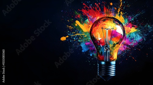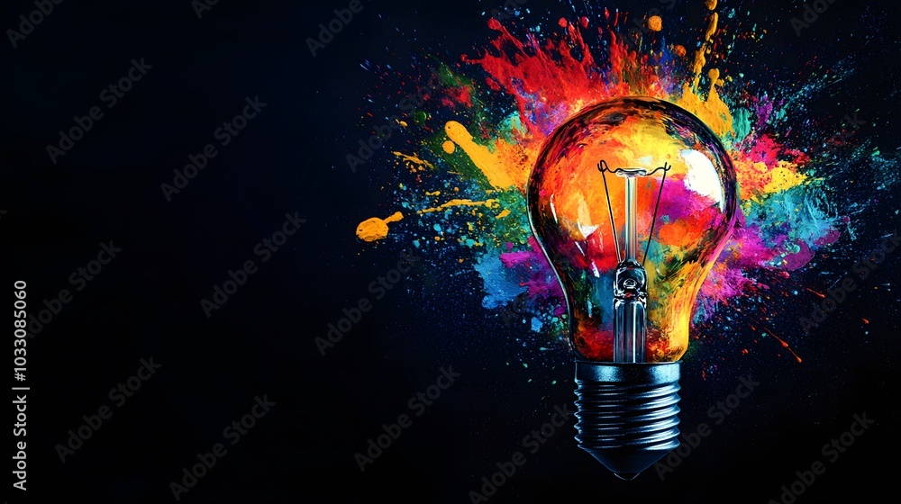 The watermark will not be included on Wall mural.: Light bulb exploding with colorful paint splatter