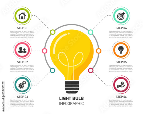 The watermark will not be included on Wall mural.: Light bulb infographic on white background - vector illustration flat design - business and finance co