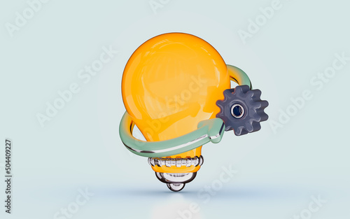 The watermark will not be included on Wall mural.: Light bulb with gears rotation arrow business concept idea 3d render for banner diagram web design