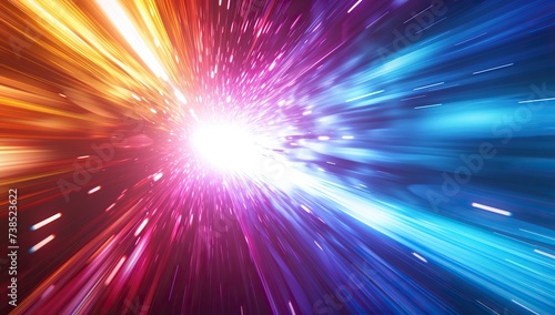 Wall mural : Light burst in space - speed of light and space exploration concept -