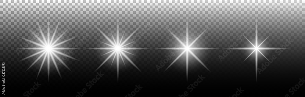 Wall mural light effect. glowing light effect stars. special light effect on transparent background. set of shi